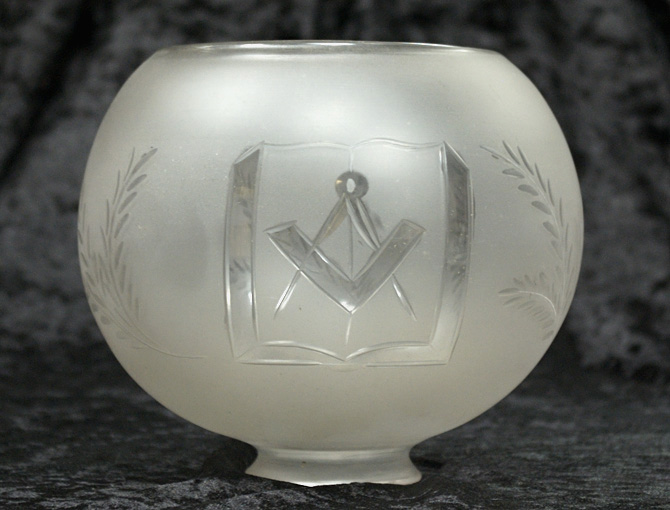 Measuring approximately seven inches wide, this undated lamp chimney is assumed to have been one of a set of three intended for the principal lodge officers' stations.