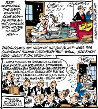 The fictional Caribou Lodge originally appeared in the late 1950s Blondie television show and in a panel of Jimmy Hatlo's They'll Do It Every Time, and later appeared in an episode of Everybody Loves Raymond.
