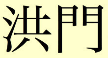 Hóng : Hung : vast (flood). Mén : gate, door, family, sect, &.28